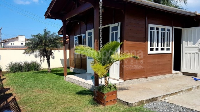 Casa mista com dois quartos, sala, cozinha(móveis sob medida), dois banheiros, área de serviço, salão de festas com churrasqueira e garagem.