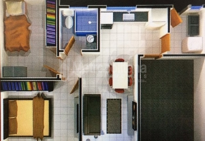 Casas geminadas com dois quartos, sala e cozinha conjugadas, banheiro e área de serviço com área privativa de 63m².