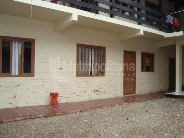 Terreno com área de 563,28m² edificado com quatro quitinetes com aproximadamente 40,00m² cada que se dividem em: quarto, sala de estar e jantar, banheiro, cozinha, lavação e 03 garagens.