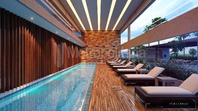 Lazer: brinquedoteca, piscina aquecida, piscina adulto e infantil, com raia, deck e bar molhado, cancha de bocha, quadra poliesportiva, espaço gourmet, salão de jogos, playground, deck de observação, churrasqueiras, salões de festas e spa.
