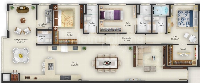 Hidromassagem), Sauna, Salão de Beleza, Área Fitness, Áreas com banheiros