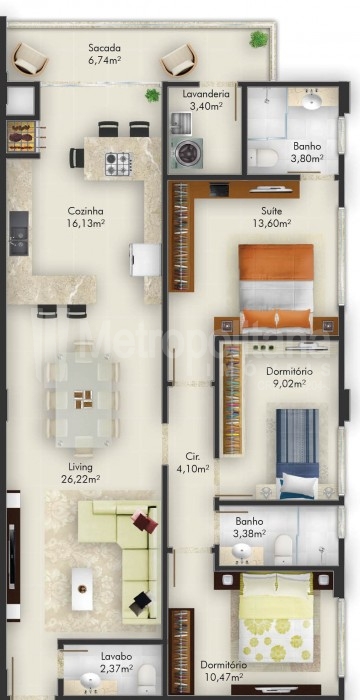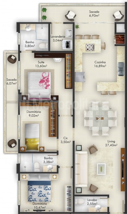 Apartamentos de 03 dormitórios sendo 01 suite.
