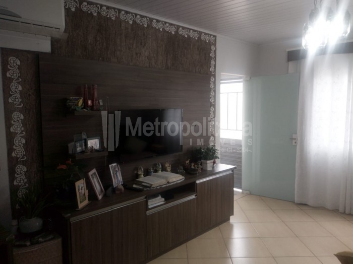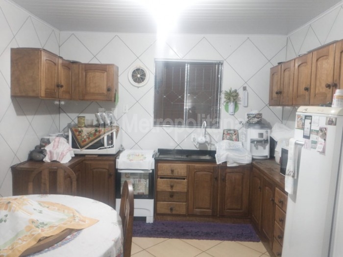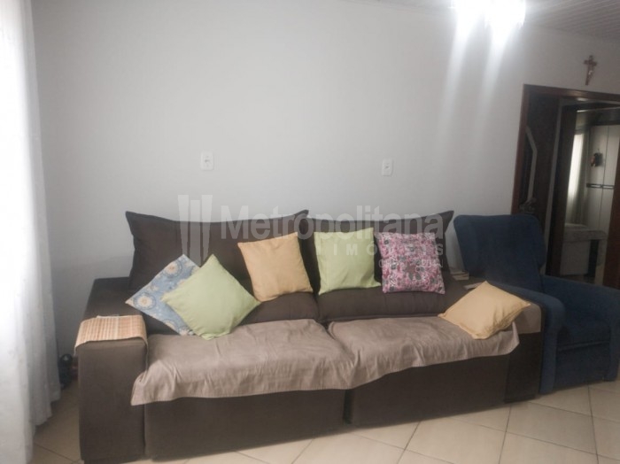 Casa de alvenaria com 1 suite, 2 dormitórios, sala de estar e jantar, cozinha, banheiro, área de serviço, área de festas, garagem e banheiro