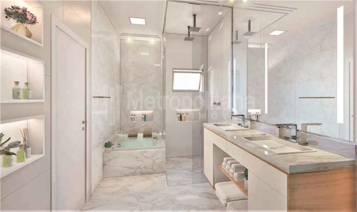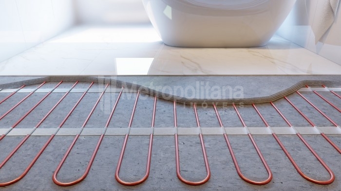 * Aquecimento de piso O banheiro da suíte master possui aquecimento de piso, podendo ser regulado na temperatura desejada, proporcionando uma inigualável sensação de conforto térmico.