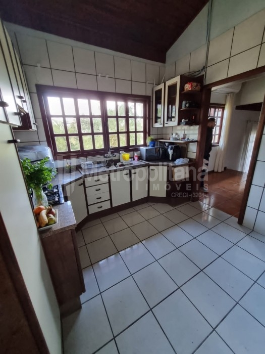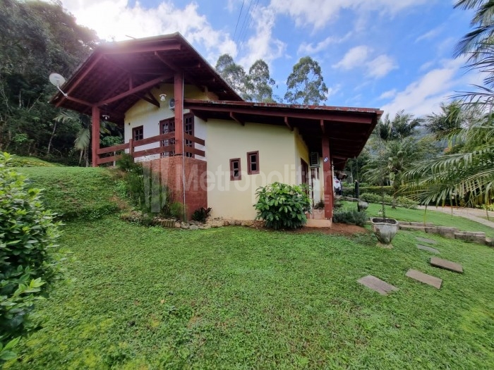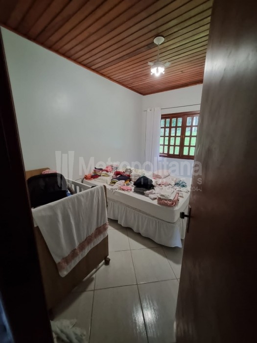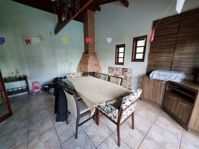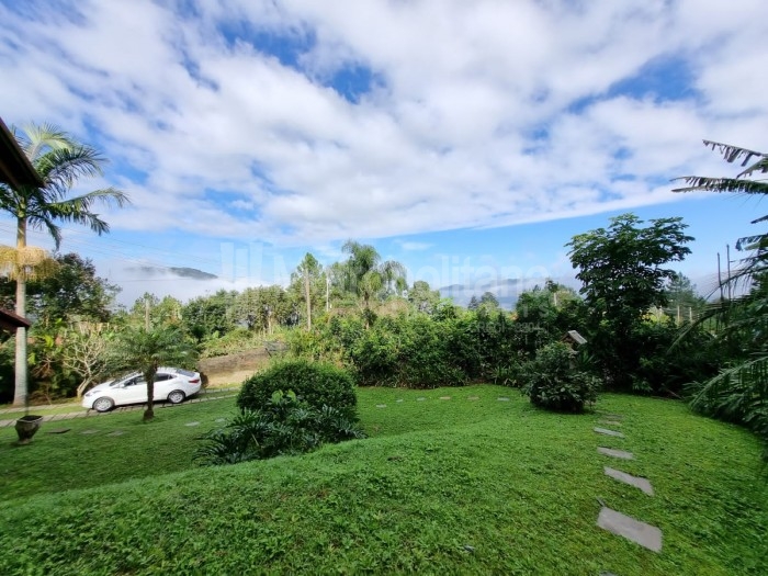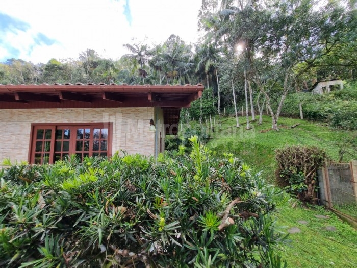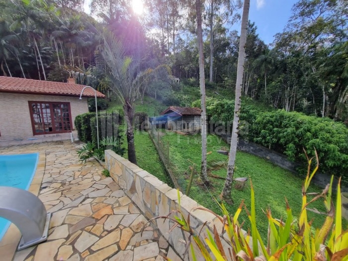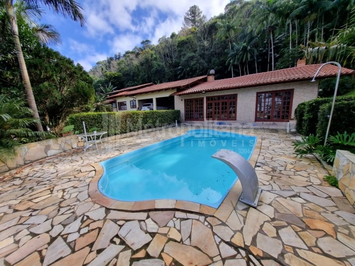 Casa com amplo terreno, arborizado e com piscina.
