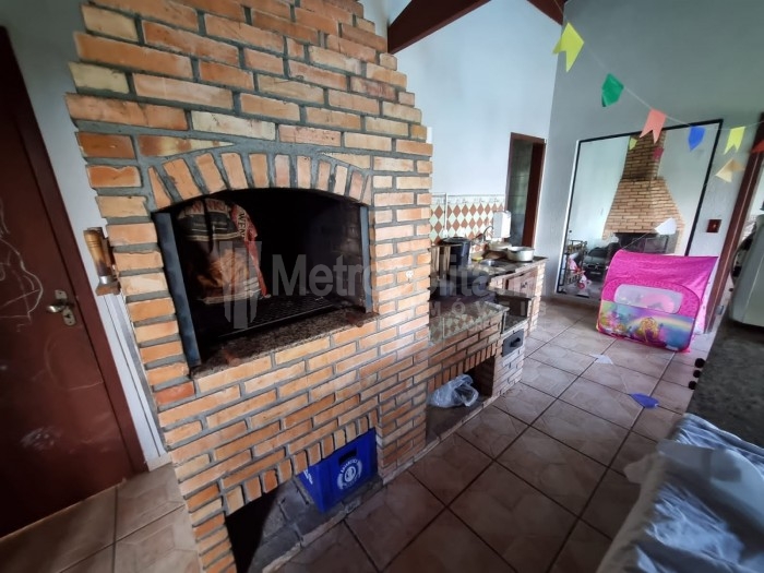 Área de festa com churrasqueira, fogão a lenha