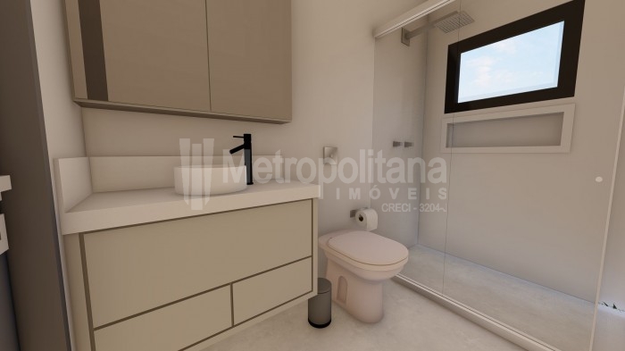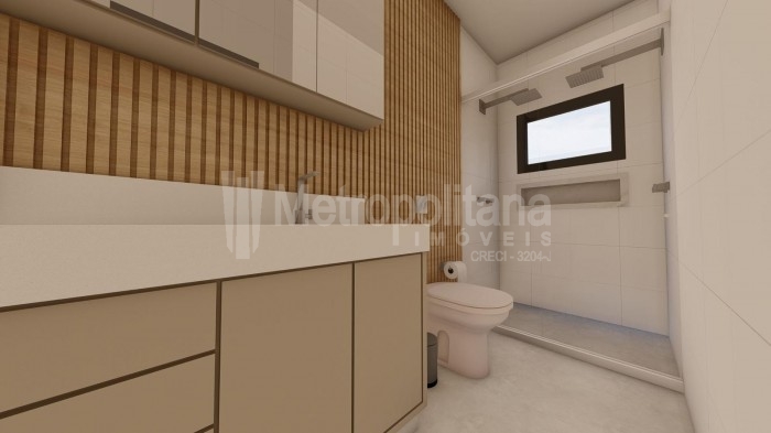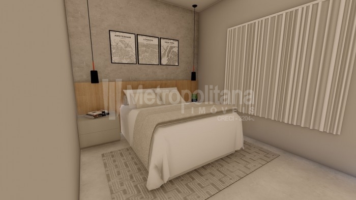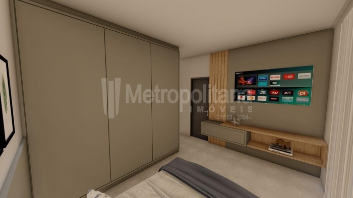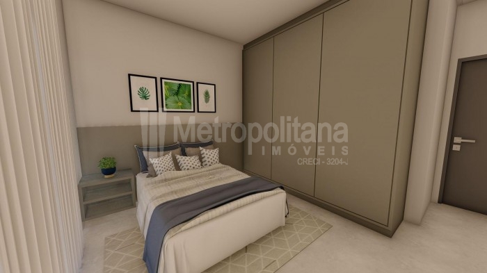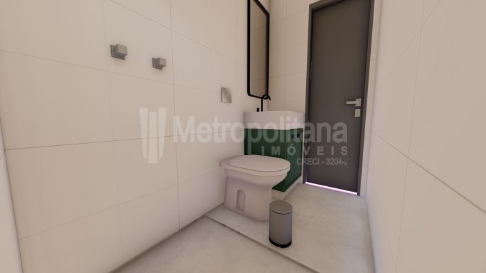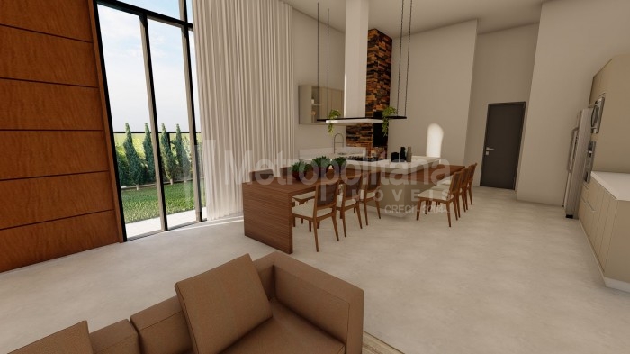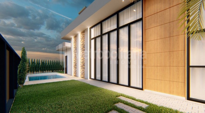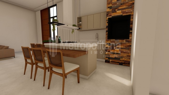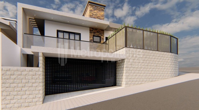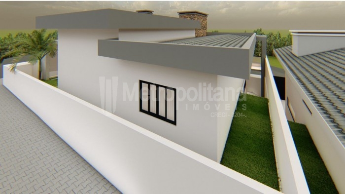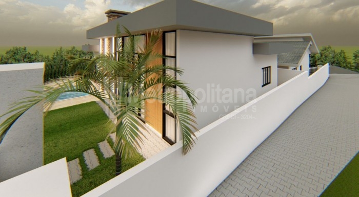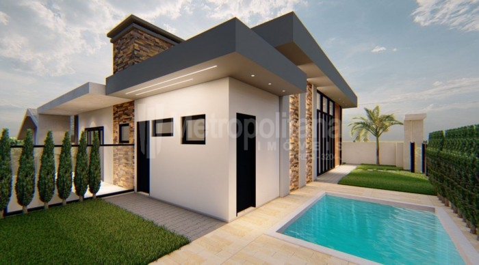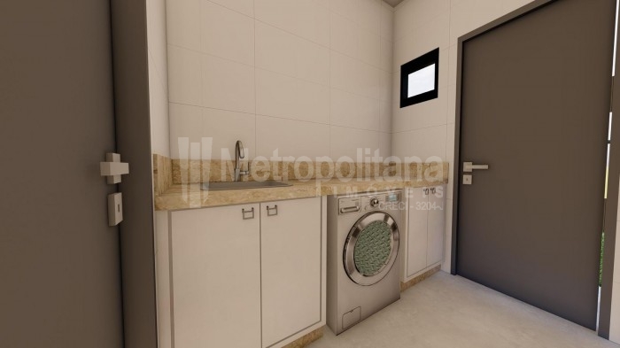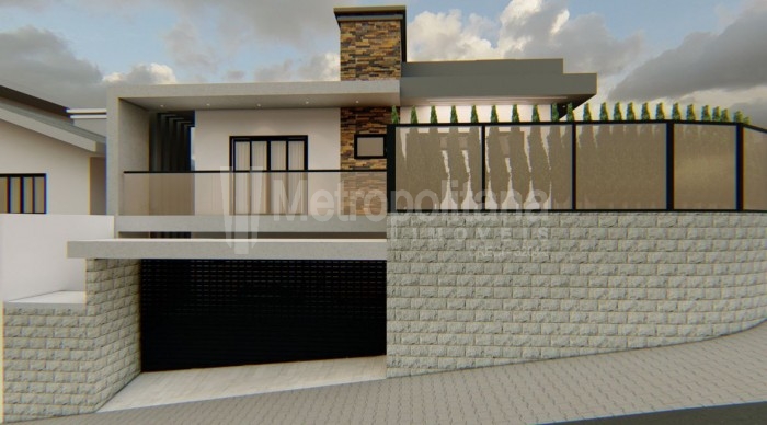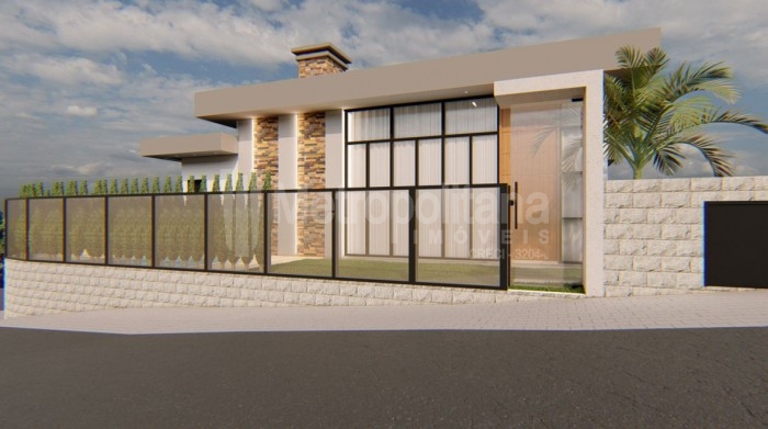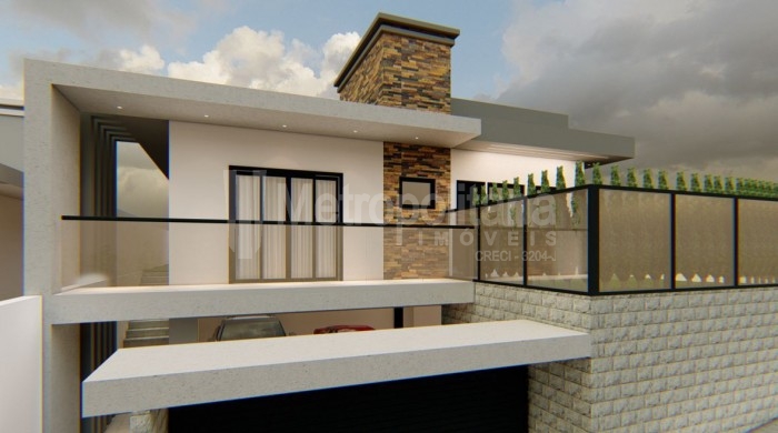 Piso térreo: Hall de entrada: Sala, cozinha, churrasqueira, área de serviço, lavabo, banheiro, 2 quartos, 1 suíte.