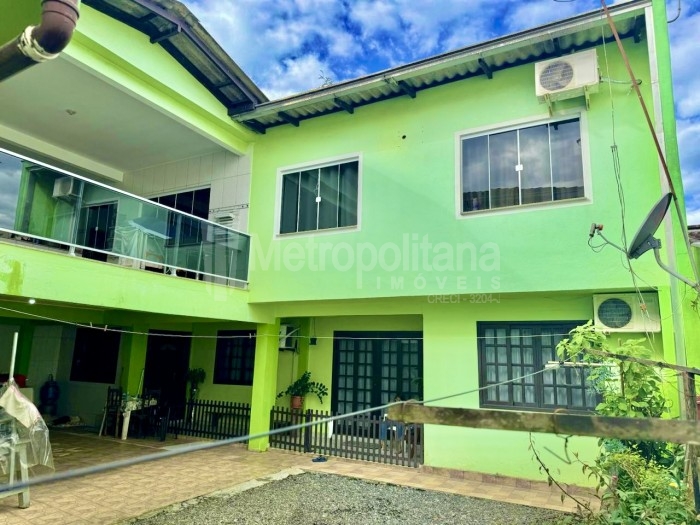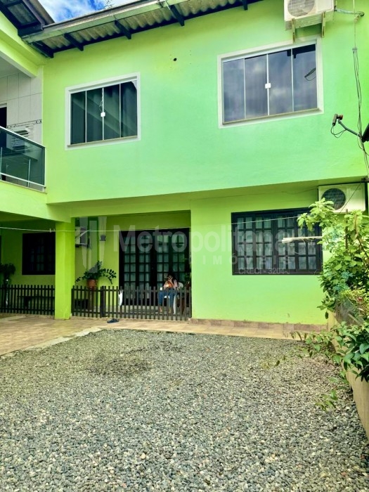 EM CIMA SAO DOIS APARTAMENTOS: UM DOS APARTAMENTOS POSSUI QUARTO, SALA, COZINHA, BANHEIRO E LAVANDERIA - O OUTRO APARTAMENTO ALÉM DESTA DIVISÃO TEM VARANDA LATERAL.