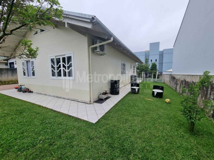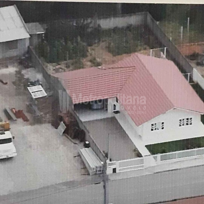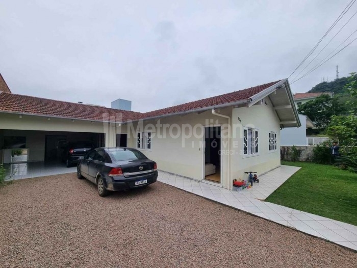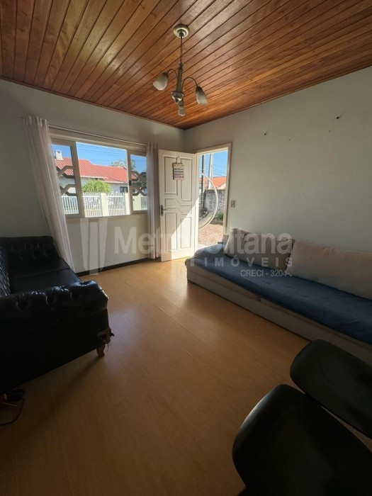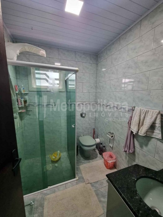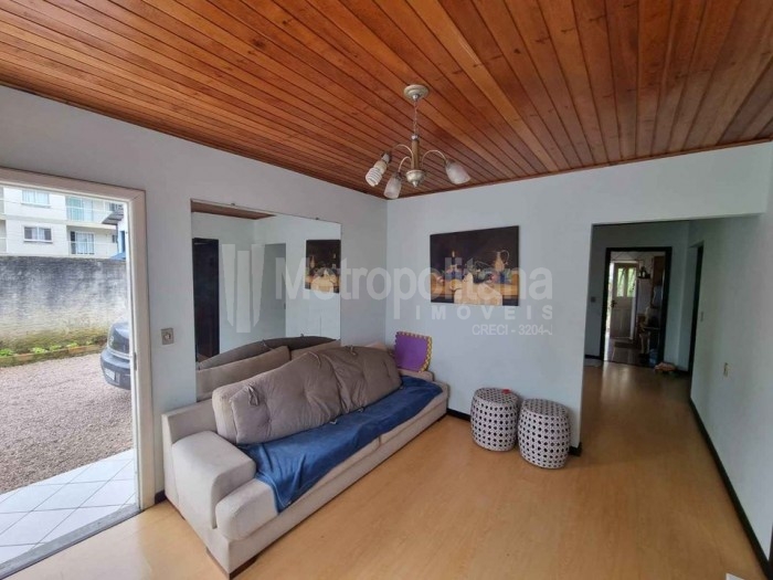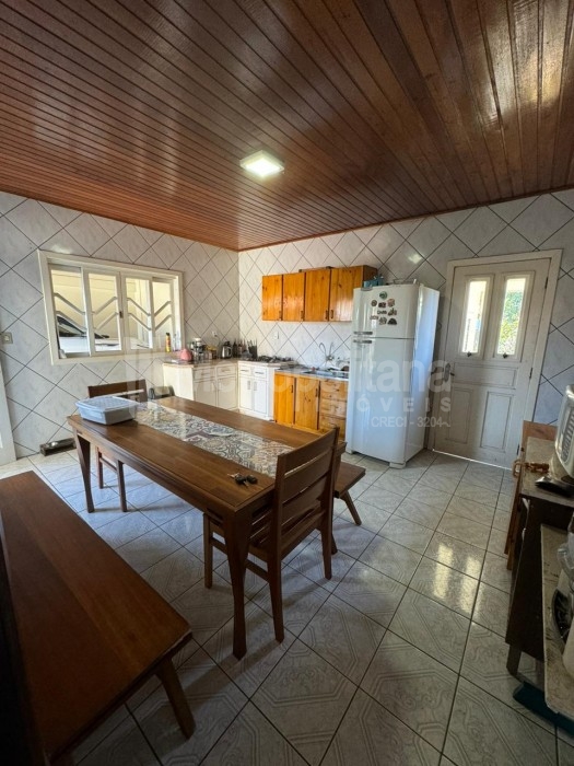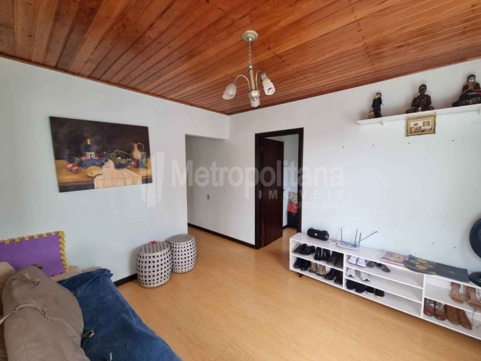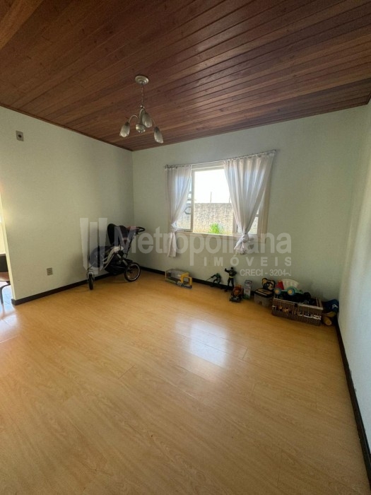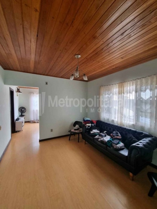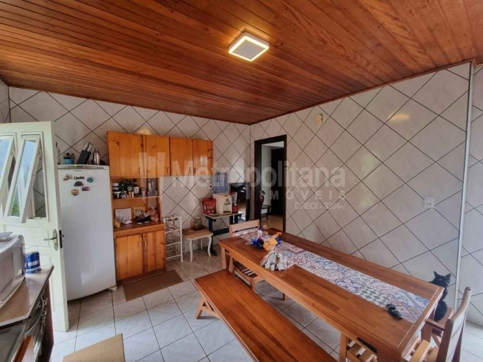 Casa de alvenaria com 3 dormitórios, 2 salas, cozinha, banheiro social, garagem para 2 veículos.
