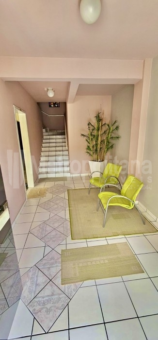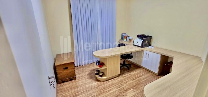 Possui uma sala comercial no térreo com tamanho de 48 mt.