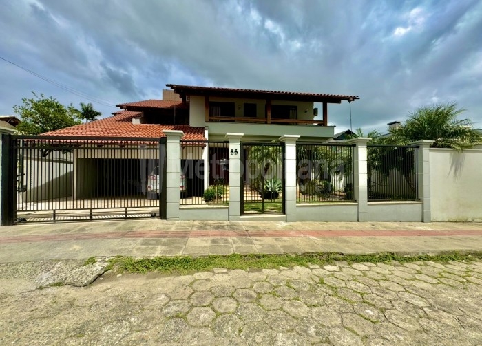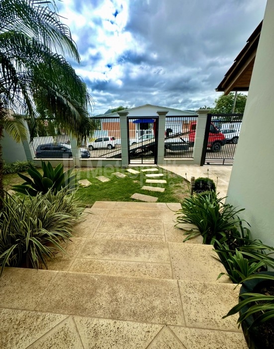 Casa estilo alto-padrão de alvenaria com 02 pavimentos, toda murada e cercada, protegida por portão eletrônico e interfone.