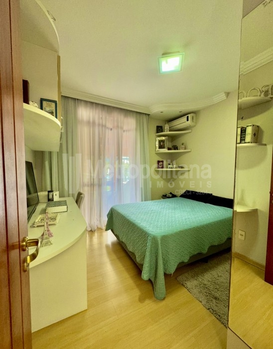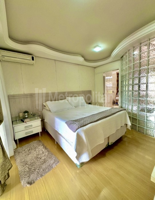 01 Suíte master com closet, banheira de hidromassagem e sacada privativa.