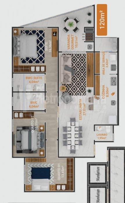 Área Privativa: 120,00