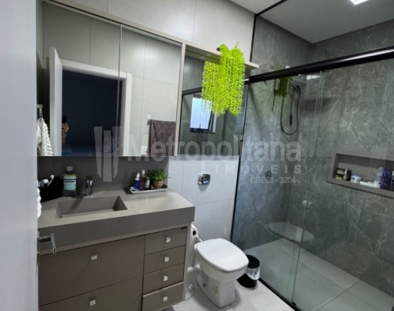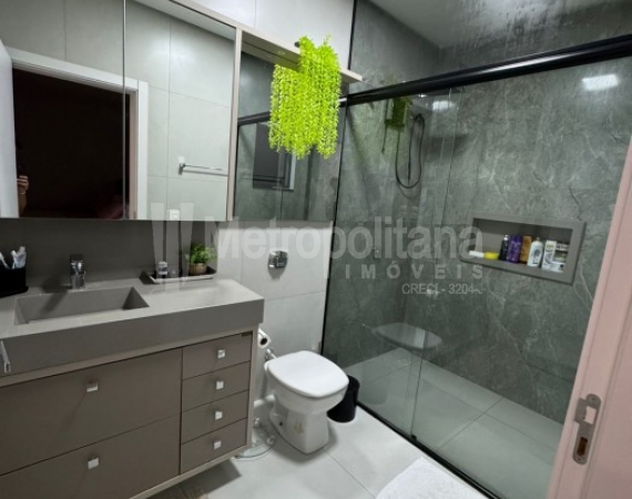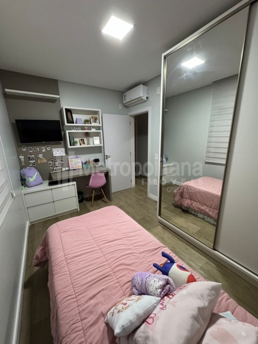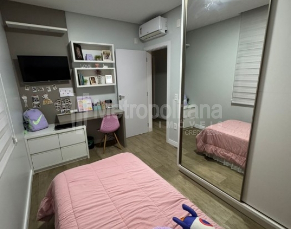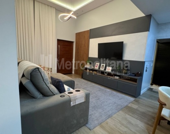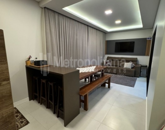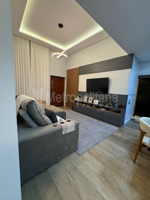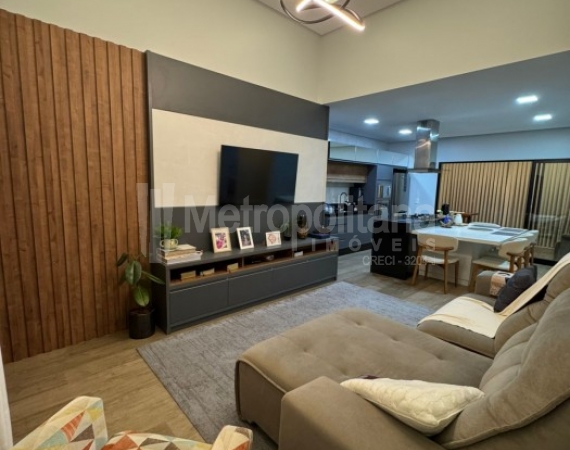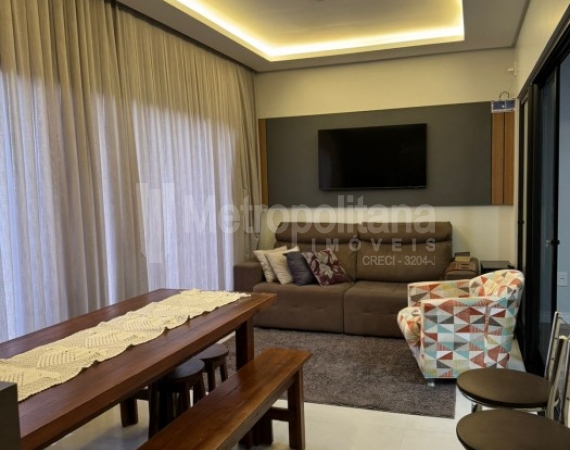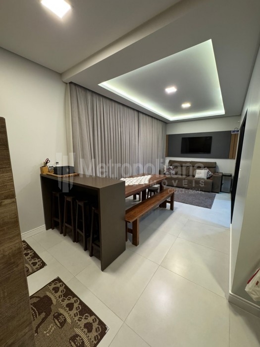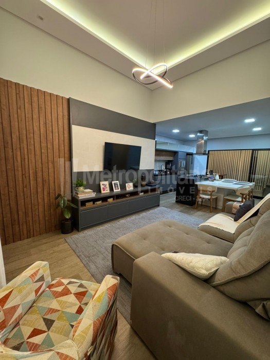 Sala de estar/TV com pé direito alto de 4 MT, integrado com sala de jantar e cozinha.