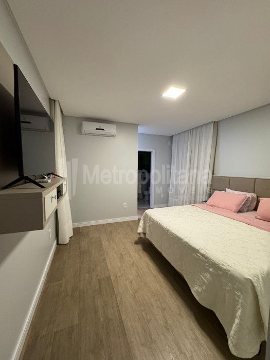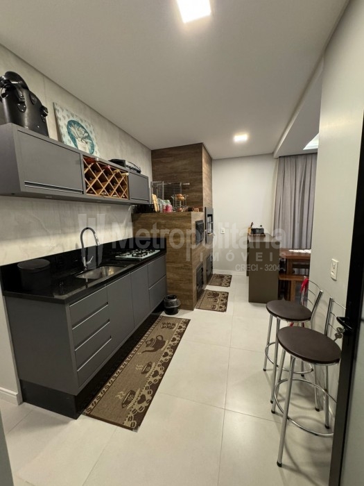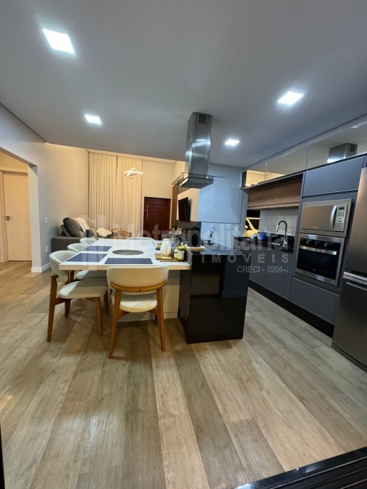 Ficam todos os móveis sob medida, luminárias, micro-ondas, forno, fogão e ar condicionados.