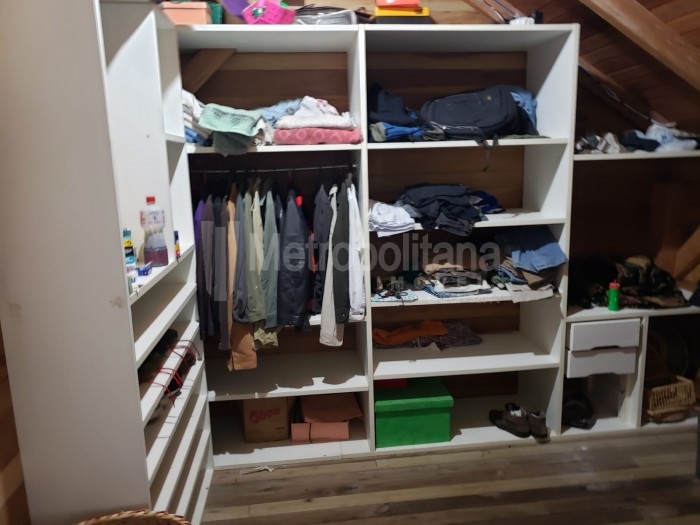 Sendo com uma suíte com closet na parte superior, com sacada.