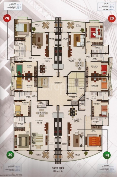Apartamento com final Bloco A 04 - área privativa 89,06m² - área comum 19,15m² - 01 vagas de garagem 25,96m² - área total 134,17m² - .