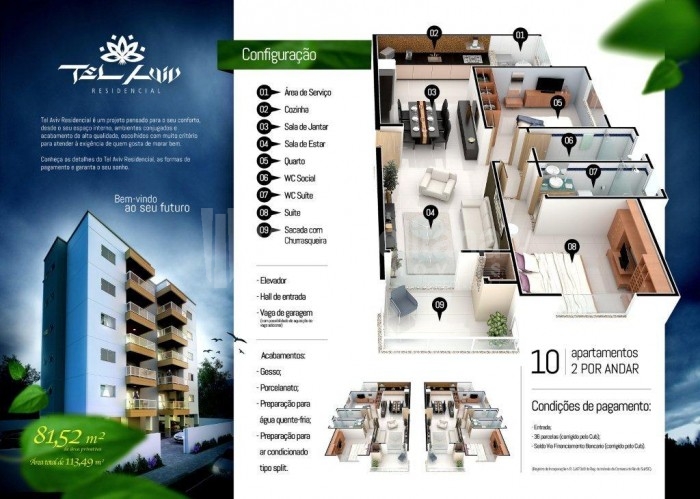 Área Privativa de 81,52 m2. - Área total de 113,49m2.